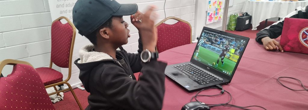 Participants worked collaboratively in groups to explore 150 years of data collected by Hearts Football club. This was made accessible via PowerBI and also as ‘raw’ data, which the participants were taught how to analyse using PowerBI. Participants played games and were facilitated to talk in groups to build team working and trust. They visited the stadium with Hearts Ambassador Gary Locke. Gary was able to tell them about the history of Hearts and the stadium as well as provide personal insights into legendary black players such as John Fashanu with whom he played for several years at Hearts. The young people also visited the onsite museum, where they were able to also discover more about the history of black players at Hearts.
